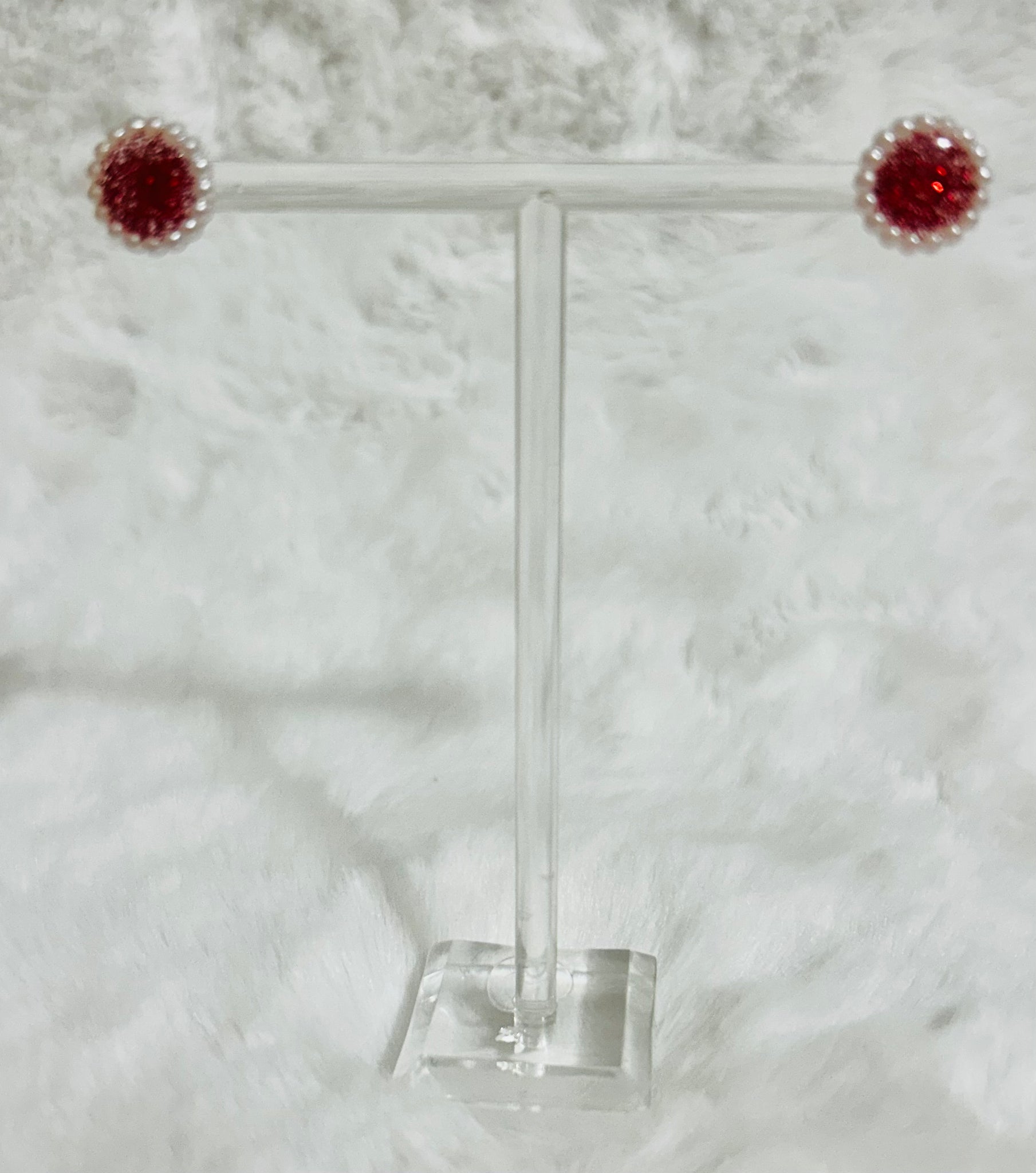 The outer edge features a neat border of small, white, tiny pearls. This gives the earrings an elegant, almost classic festive look.