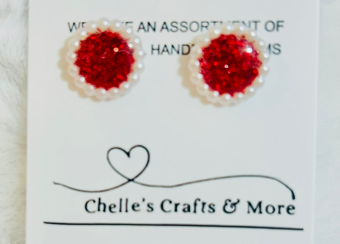 The center of the circle is filled with a vibrant, sparkly red glitter in resin.