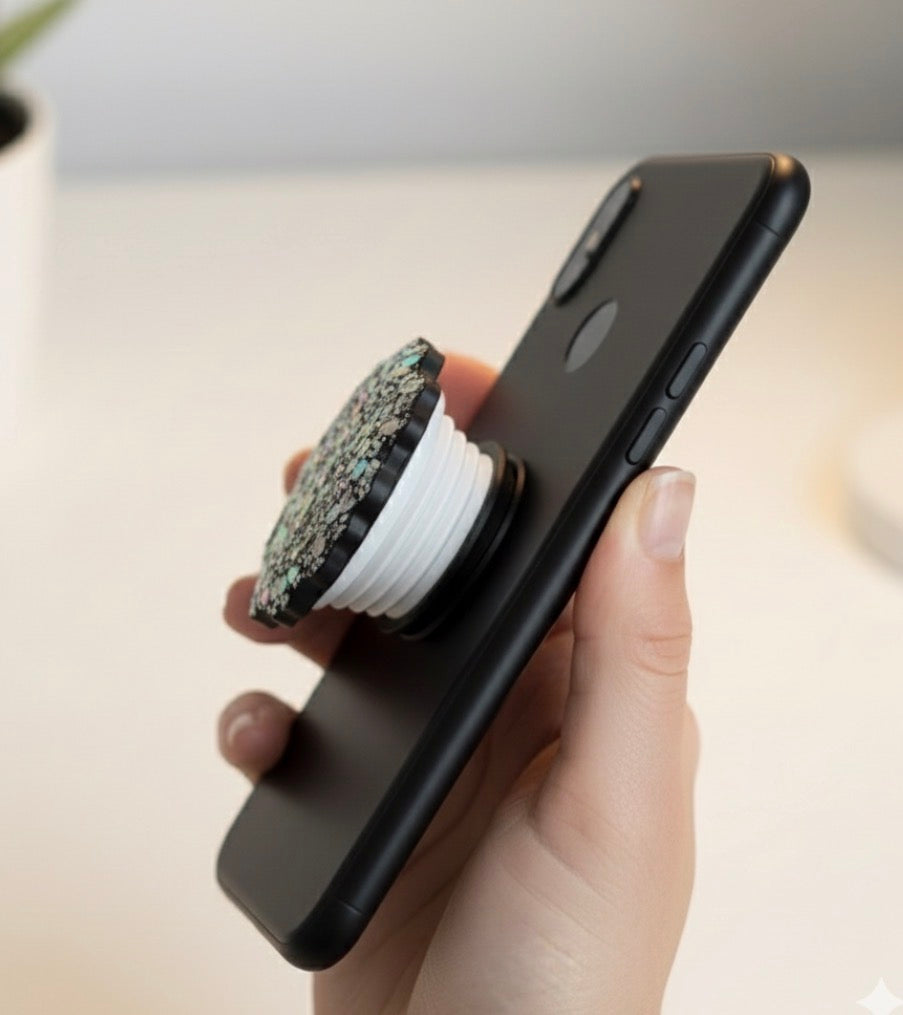 The result is a highly textured and dazzling accessory that resembles a dense field of crushed gems, such as opals or geodes, against a dark, metallic background.