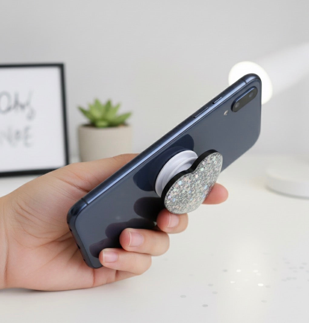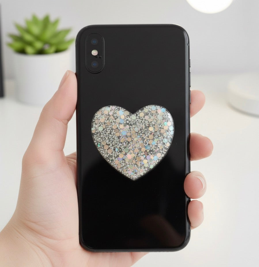A heart-shaped phone grip or PopSocket, designed to attach to the back of a mobile device.