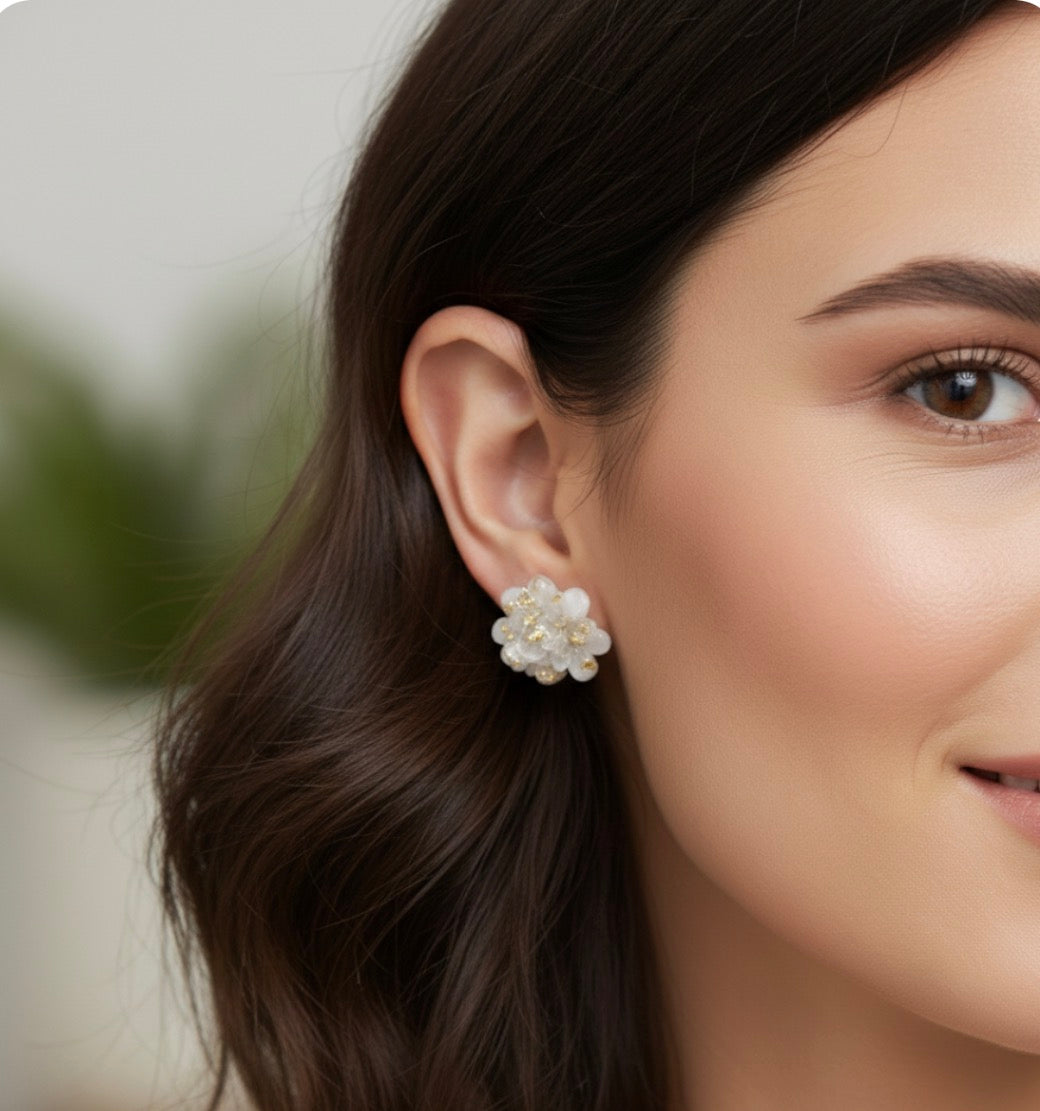 The overall look is one of elegant contrast—the soft, frosted white serves as a perfect backdrop for the rich, sparkling gold accents. They are a versatile piece, suitable for both everyday wear and more formal occasions.