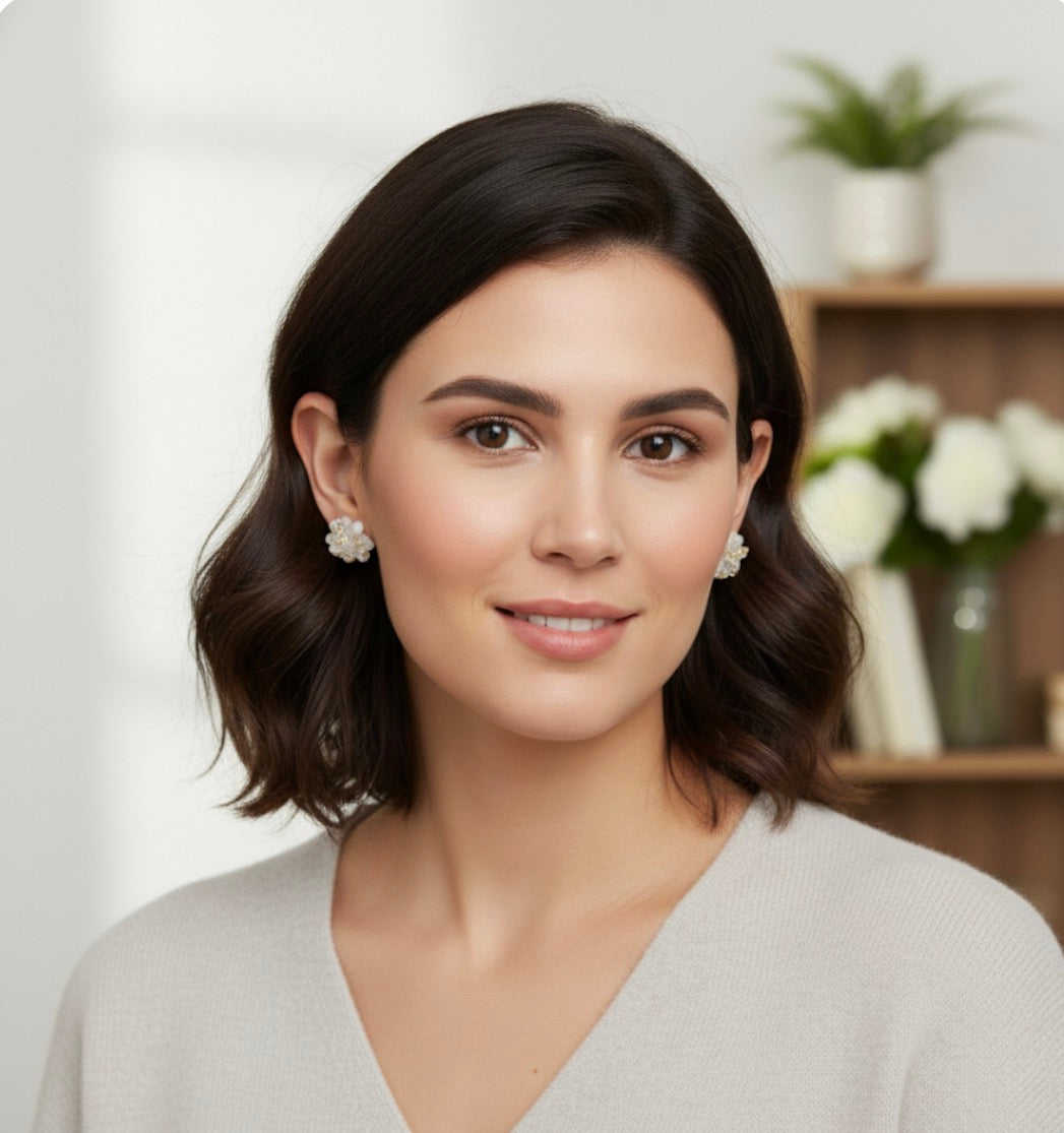 This is a lovely pair of stud earrings with a sophisticated, floral design.